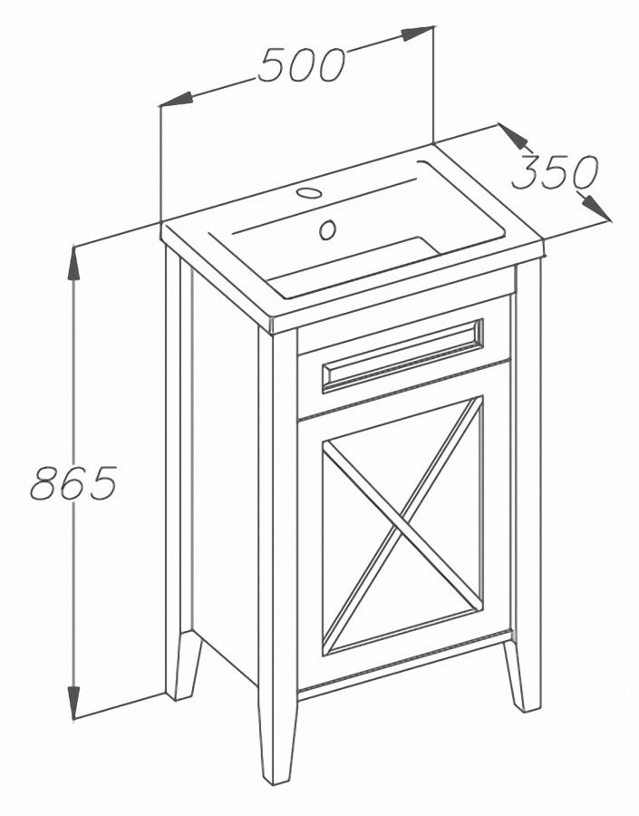 - Тумба под раковину (ш/в/г): 500x875x380 мм