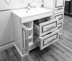 Напольный пенал Оникс 50 от производителя Opadiris представлен в белом цвете отделки с богатым декором из серебряной патины. Геометричная фрезерная резьба на фасадах, хромированные ручки-скобы и широкие ножки подставки придают изделию роскошный узнаваемый образ, который гармонично сочетается с другими предметами интерьера этой линейки. Пенал изготовлен из высококачественного влагостойкого МДФ в глянцевом покрытии. Для хранения вещей предусмотрены две функциональные зоны – два выдвижных ящика и верхнее отделение с распашной дверцей в правостороннем исполнении.