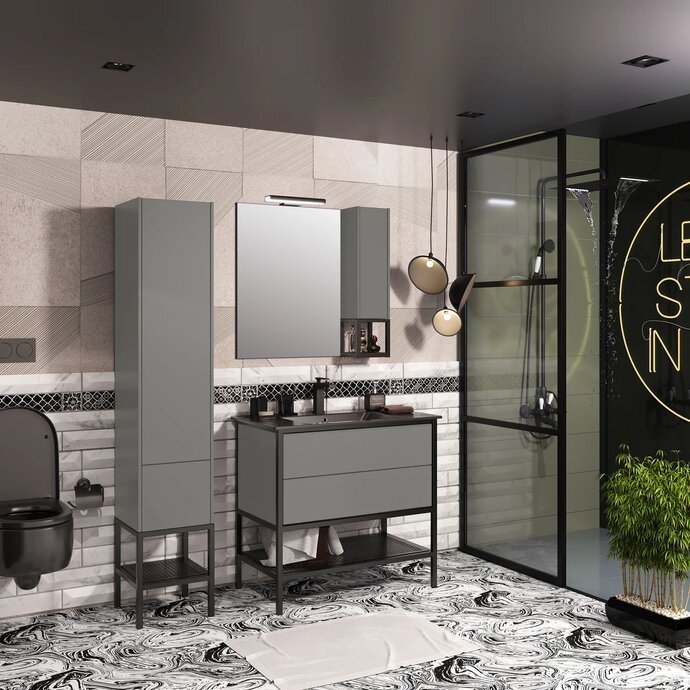 Шкафчик для зеркала Опадирис Треви 20 R серый матовый функционально дополнит верхнюю зону над раковиной, позволив аккуратно хранить необходимые косметические средства на удобных полках прямо рядом с зеркалом. Прямоугольный модуль с распашной дверцей, открывающейся одним нажатием, идет в сборе с черной металлической полкой, которая создает дополнительный яркий стилистический акцент всей конструкции.