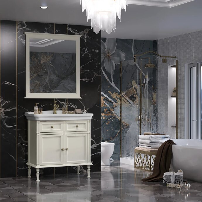 Цена на сайте указана за тумбу и керамическую раковину «Kirovit Модерн 85». Тумба идёт с двумя открывными фасадами и двумя выдвижными ящиками.