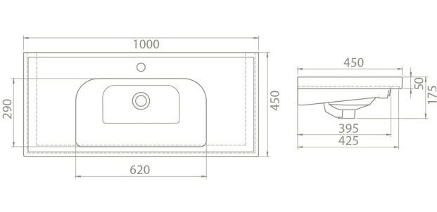 - Раковина CeraStyle Frame 100 (ш/в/г): 1000x175x450 мм